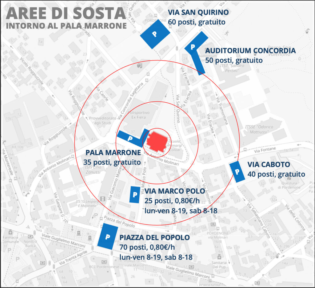 - il parcheggio dell’Auditorium Concordia, 50 posti gratuiti