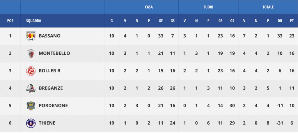Se restava una speranza di riagganciare il vertice, questa è tramontata definitivamente a Montebello (5-1, ancora in trasferta), dove invece abbiamo dato un sostanziale via libera ai padroni di casa per il loro passaggio del turno. Liberata finalmente da malanni e condizionamenti, Pordenone si è ritrovata gagliarda e assai carica nell’epilogo stagionale, salutando il proprio pubblico con uno splendido pareggio, che poteva tranquillamente essere qualcosa di più, opposta alla capolista ammazza-campionato di quest’anno, ovvero il Bassano.