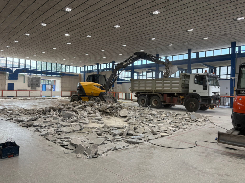 LA PROGETTAZIONE Con l’avvio della nuova concessione per la gestione dell’impianto, assegnata dal Comune di Pordenone nel 2023 al Raggruppamento temporaneo composto da ASD GS Hockey Pordenone e ASD Pattinaggio Artistico Pordenone, ci siamo messi in cerca di finanziamenti. Abbiamo avviato un gruppo di lavoro, stimolato dalla determinazione di Andrea Moro, già dirigente sportivo e titolare dell’Impresa Moro srl, e guidato dall’arch. Roberto Bove dello Studio SET di Pordenone e dal p.i. Dario Feletto dello Studio Associato Progetto Impianti. Grazie a loro abbiamo confezionato un progetto con cui andare in cerca di finanziamenti pubblici: nell’estate del 2024 la Regione Autonoma Friuli Venezia Giulia ci ha assegnato due contributi a fondo perduto per la manutenzione di impianti sportivi, per un totale di circa 235.000 euro. Un anno di preparativi e il 16 giugno abbiamo inaugurato il cantiere, che in meno di tre mesi doveva garantire la ripresa regolare delle attività sportive.